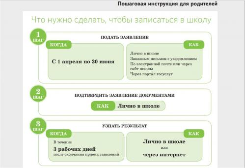 На портале Госуслуг (https://www.gosuslugi.ru/600426/1/form) необходимо заполнить стандартное заявление о зачислении ребенка в первый класс
