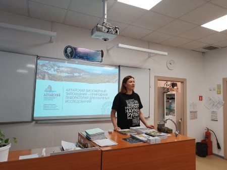 11 ноября провели экологический урок в 8 Б классе. Гостем на этом уроке была зам. директора Алтайского государственного заповедника Татьяна Алексеевна. Она рассказала ребятам о животных, охраняемых работниками заповедника. О редком подвиде оленя. Подчеркнула важность пропаганды бережного отношения к природе. Оставила в подарок школе научные работы коллектива заповедника. Договорились провести ещё ряд встреч с учащимися других классов. Подобные встречи оставляют глубокое впечатление у детей. Воспитывают чувства ответственность ценности за братьев меньших (животных и растений).