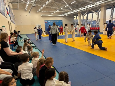 Бочкарева Маргарита Сергеевна провела показательную тренировку, ознакомила с правилами проведения соревнований и рассказала историю возникновения самбо. Макаров Эзен Радимович провел разминку и показал эстафетные игры (направленные на скростно-силовые способности).